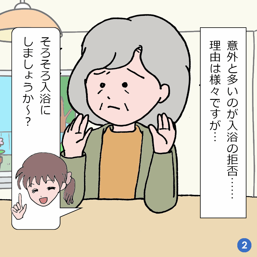 拒否される利用者様を浴室へとお連れするまでの試行錯誤や